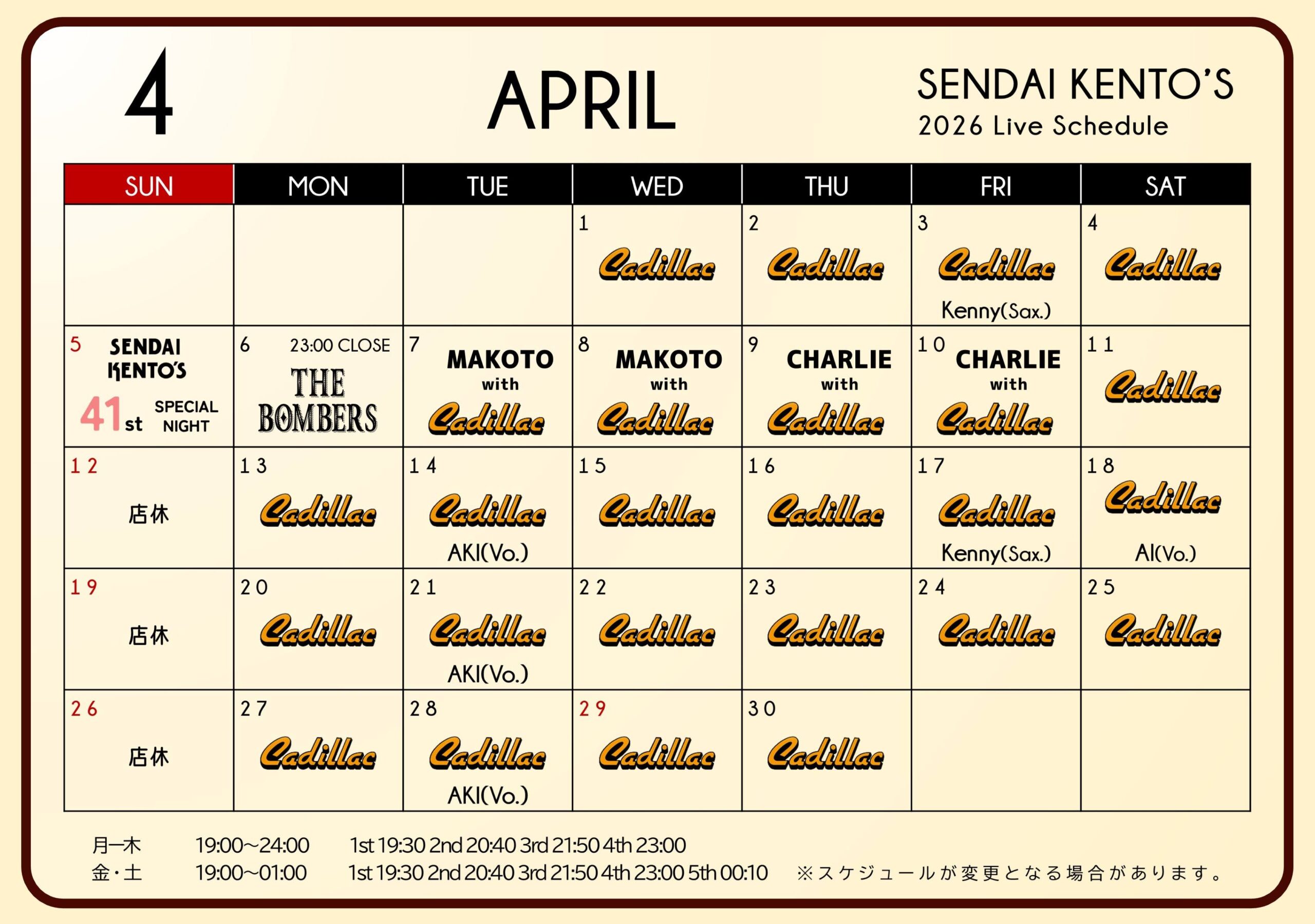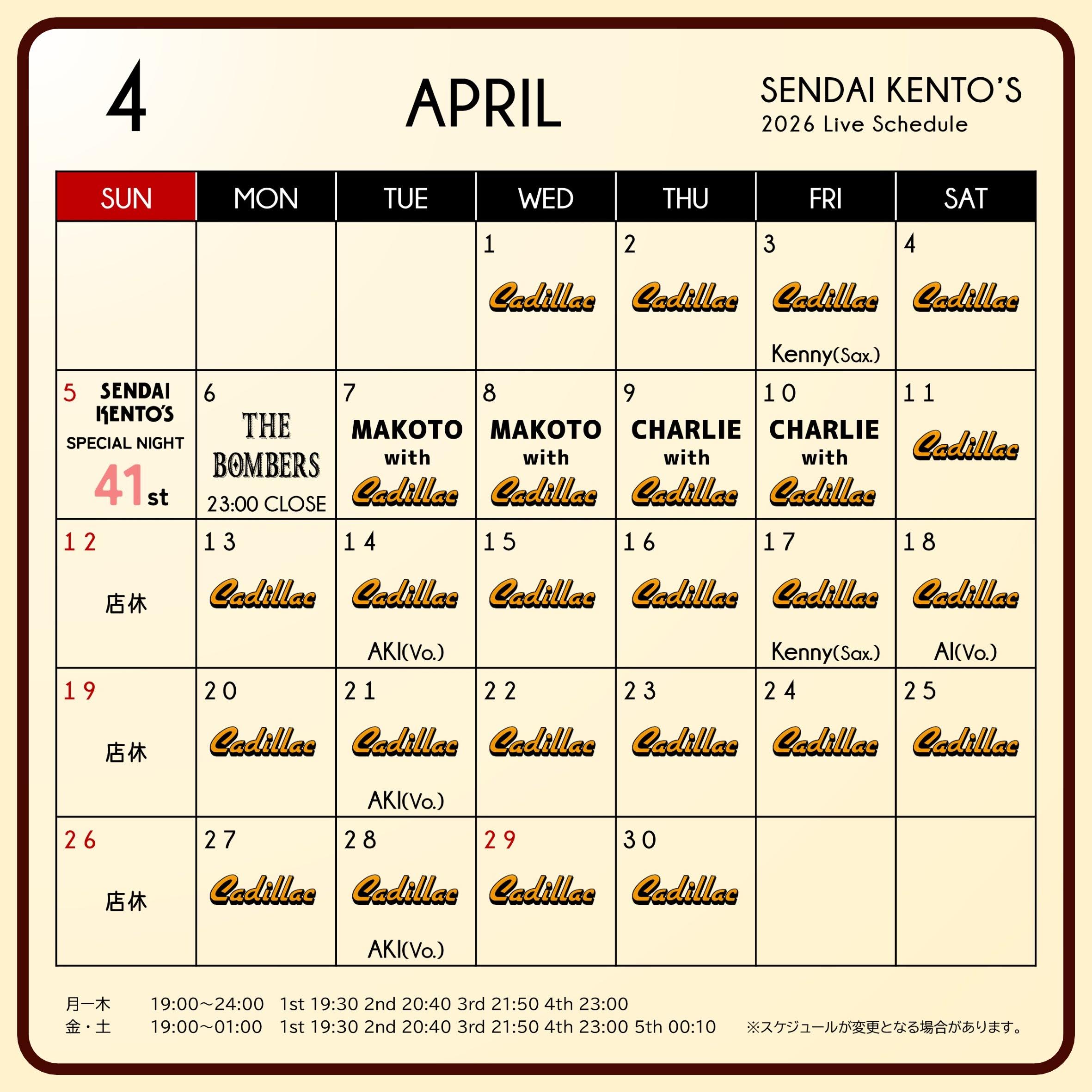 2026-03-27 20:17【仙台ケントス41周年week★4/6 THE BOMBERS】